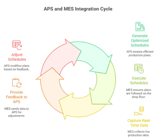 APS and Manufacturing Execution Systems (MES) work hand in hand to deliver a closed-loop production planning and execution environment: