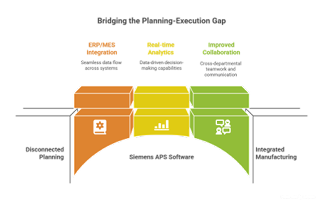 Siemens APS software offers a comprehensive and scalable solution designed to help manufacturers bridge the gap between strategic planning and day-to-day execution. It supports digital transformation initiatives by integrating seamlessly with ERP and MES systems, enhancing visibility across the entire production chain.
